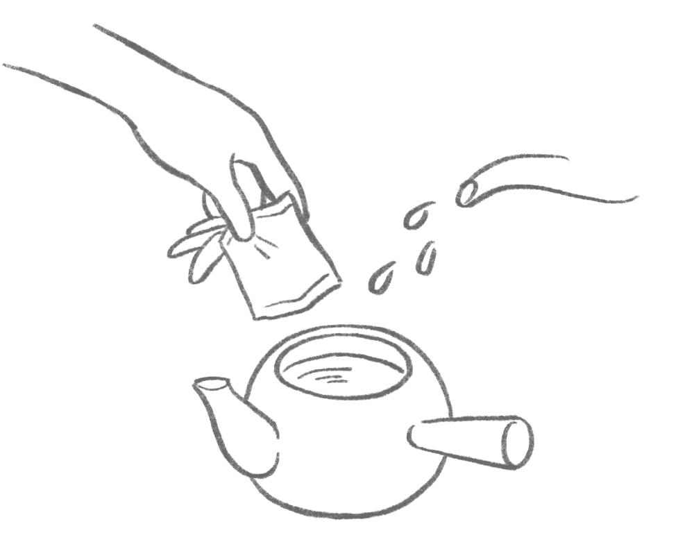 急須に1〜2袋程度の自整茶を入れ、お湯を注ぐ。
