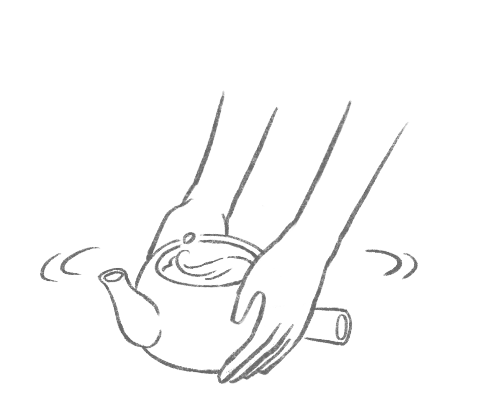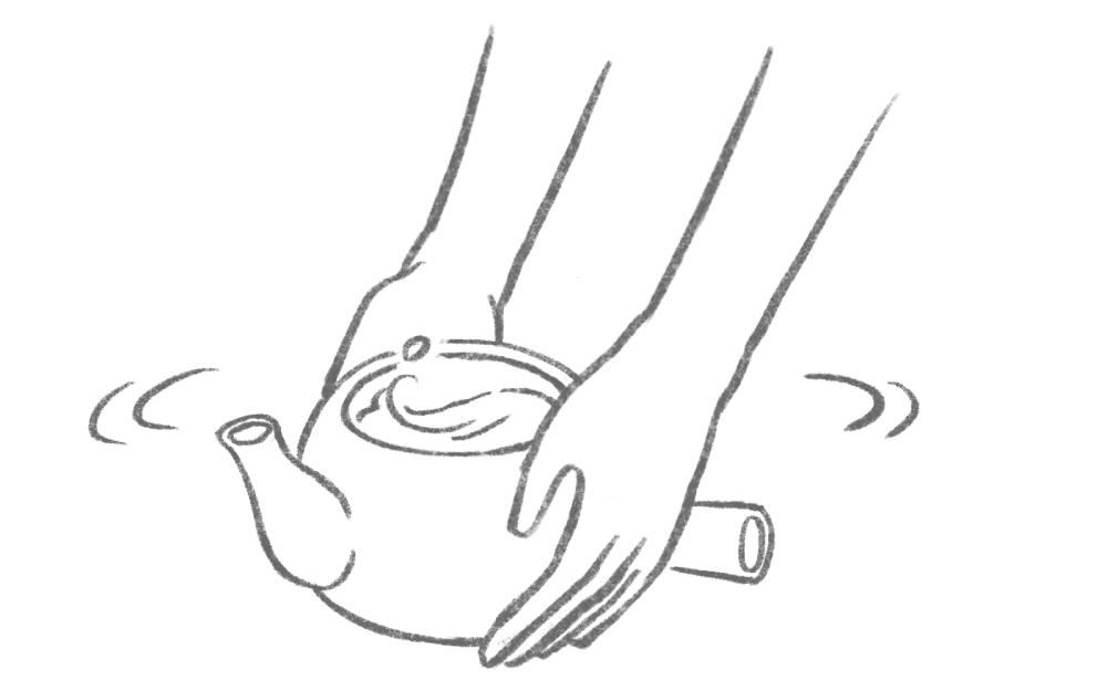 二煎目はそこから10分程度が飲みごろです。急須をゆっくりと混ぜながら、二煎目を注ぎます。