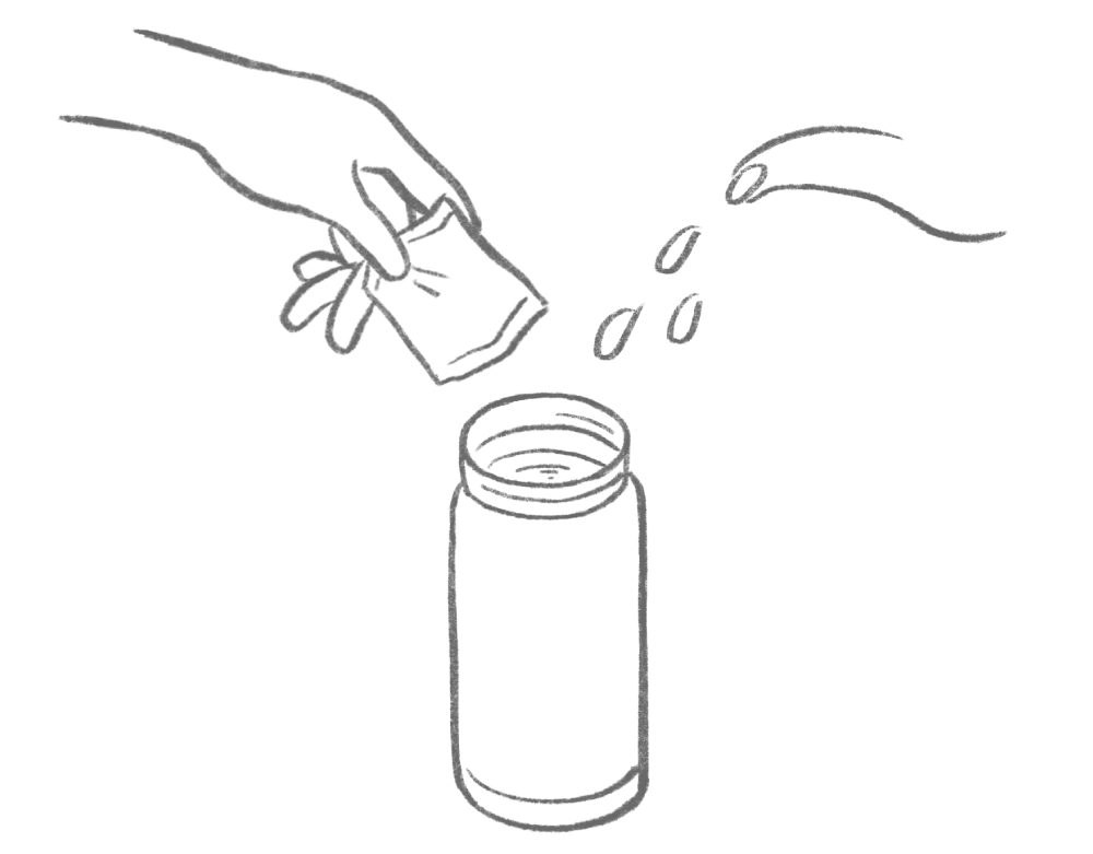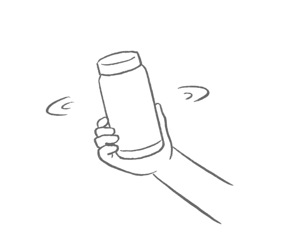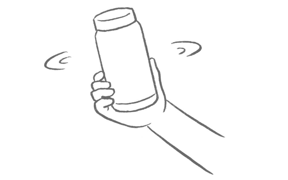 15分程度置いたあとに、タンブラーの蓋を閉めた状態で、ゆっくりと混ぜます。(内容物が漏れることもありますが、それを内服してしまっても問題ありません)