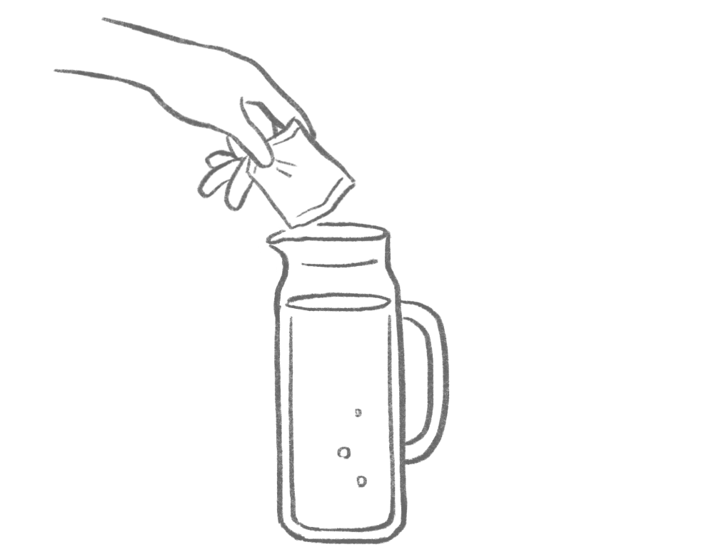 1〜1.5L程度の水に、自整茶を入れて、1時間程度常温で抽出する。